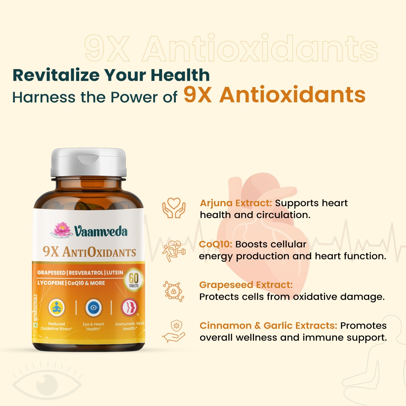 Our blend of Arjuna Extract, CoQ10, Grapeseed Extract, Cinnamon Extract, Garlic Extract, Resveratrol, Lutein, Lycopene, and Zeaxanthin acts as a powerful defense system against free radicals, protecting cells from oxidative stress and promoting overall health and longevity.
