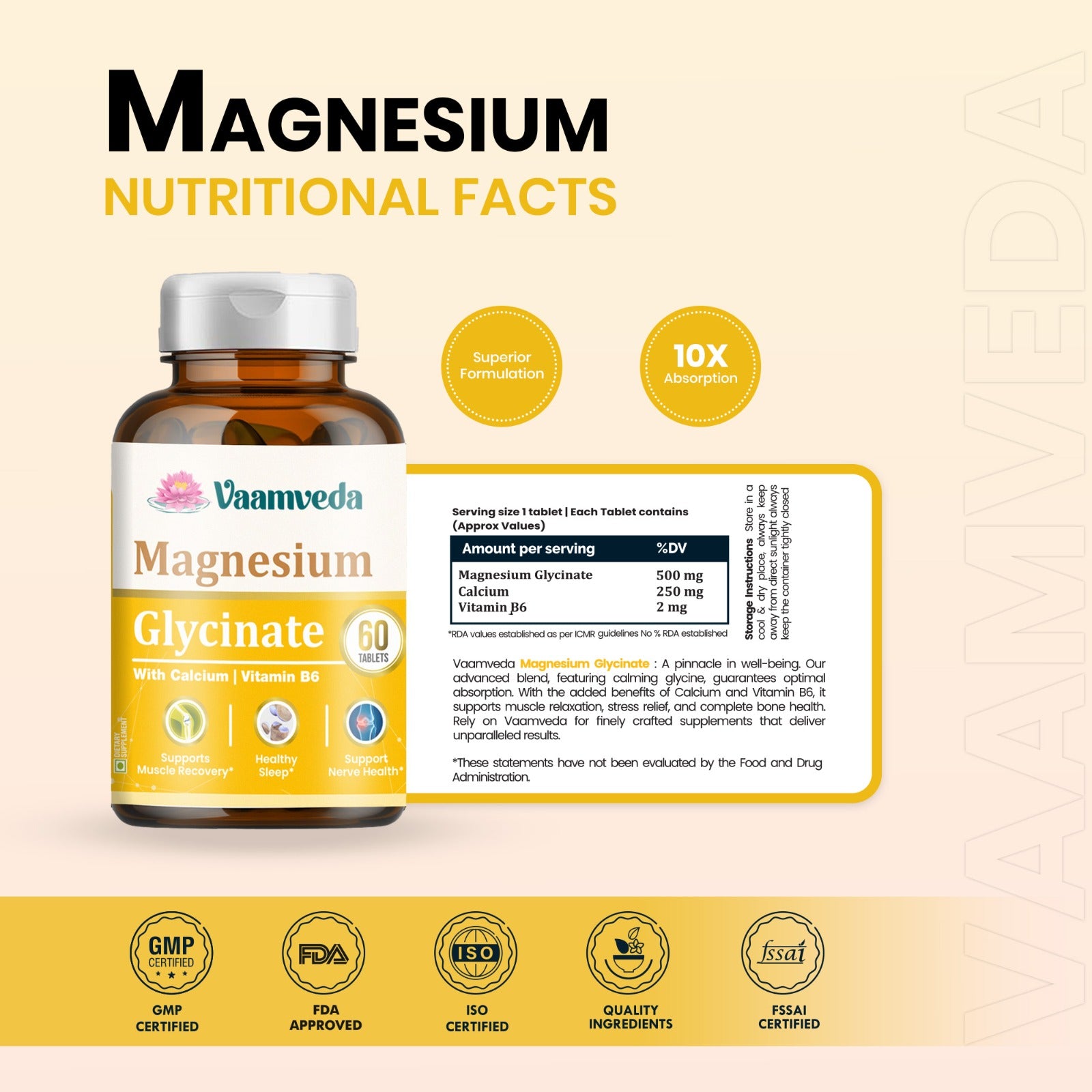 Known for muscle relaxation, Magnesium Glycinate eases tension, aiding in recovery and promoting restful sleep.