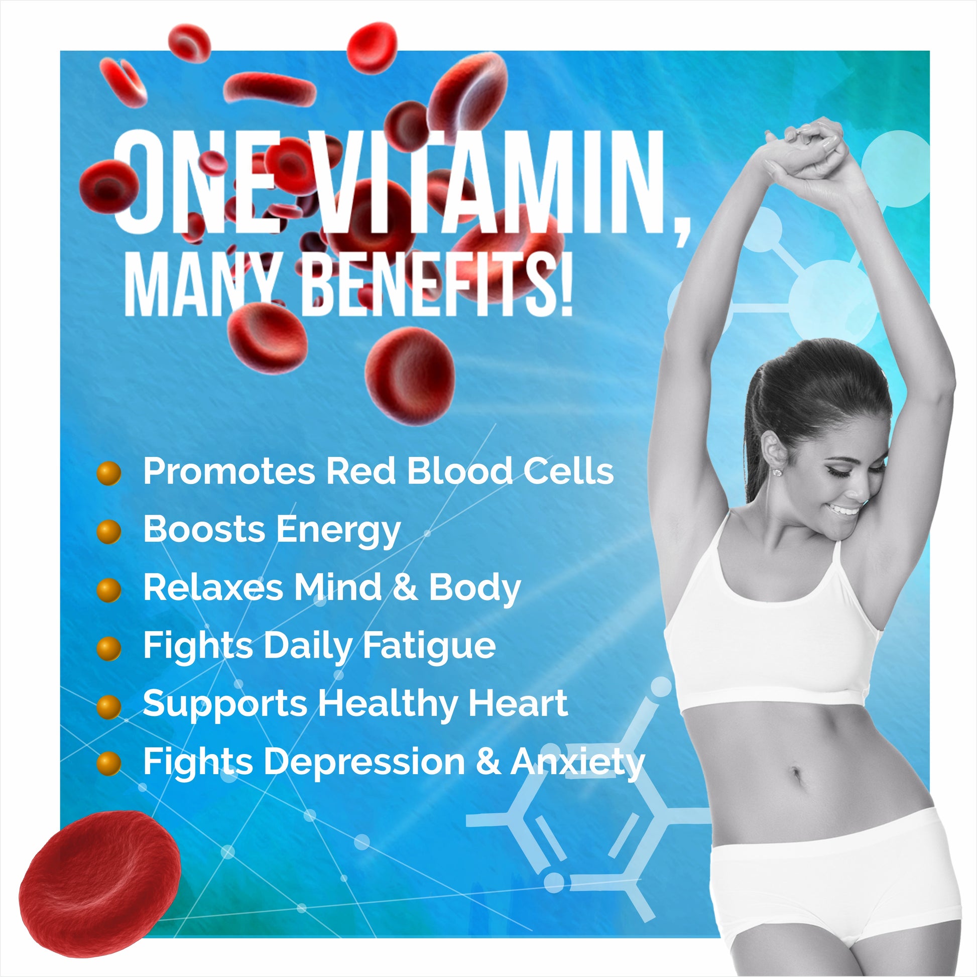 Vitamin B12 aids in the development of red blood cells, crucial for oxygen transport and maintaining optimal blood health